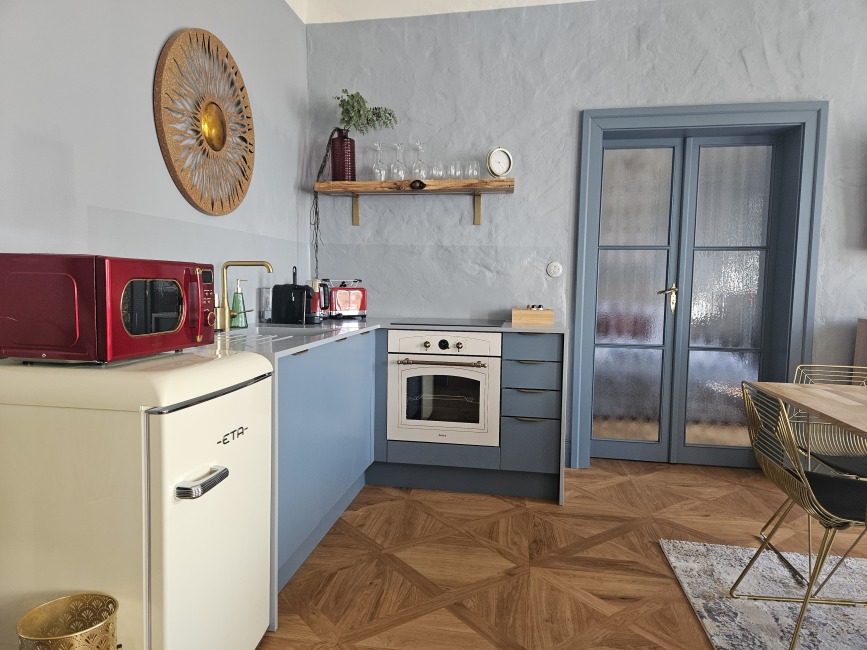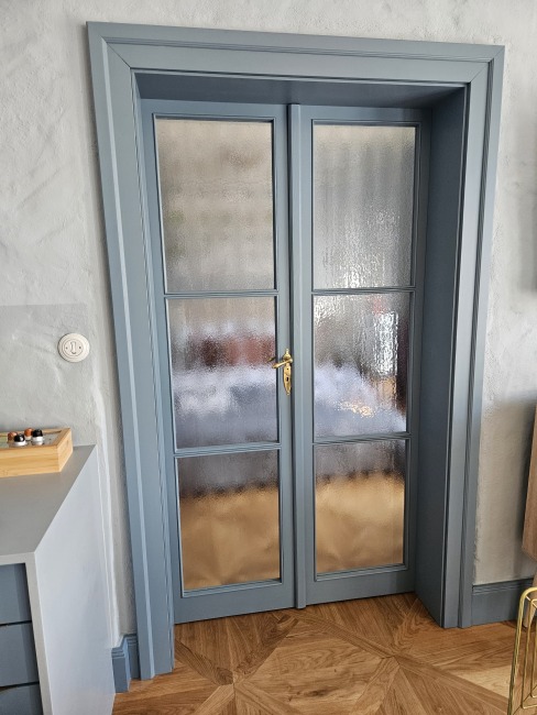 Renovace dveří a oken, výroba kuchyňské linky a vestavěné skříně. Navrženo architekty - Annie Černá a Ing. arch. Vojtěch Pošmourný.