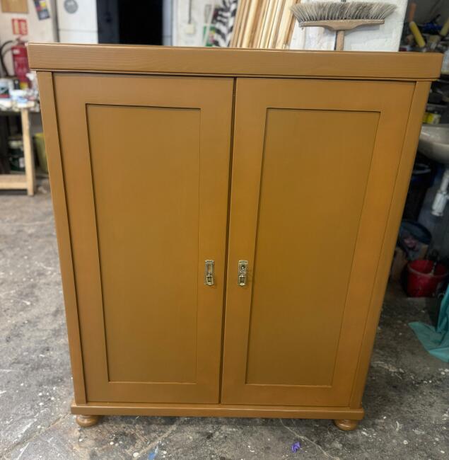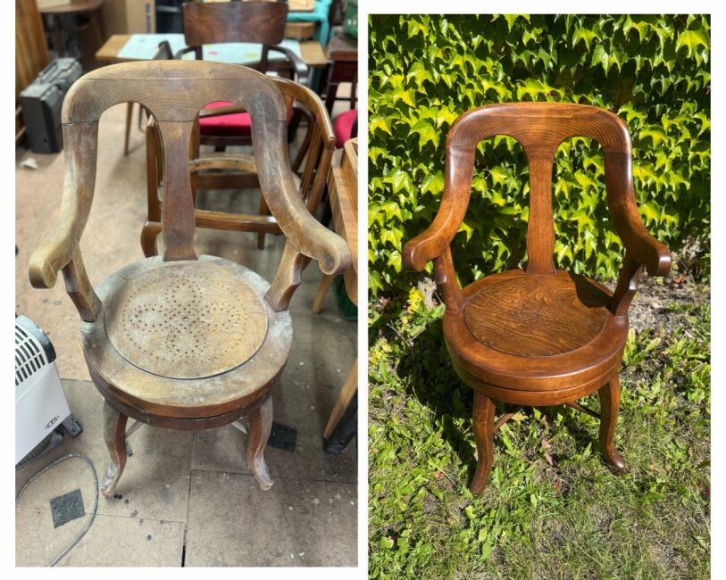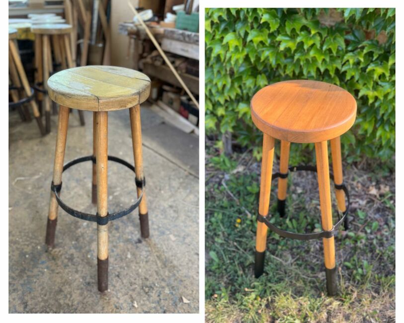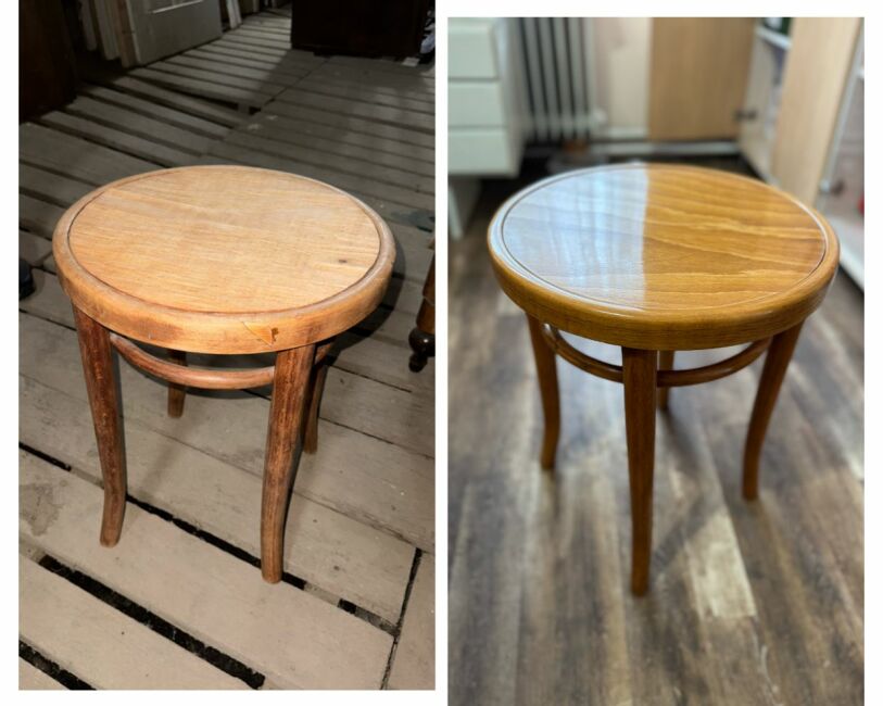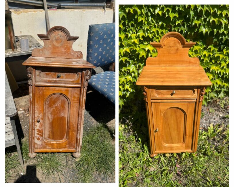 Při restaurování nábytku z měkkého dřeva je třeba odstranit staré nátěry. Děje se tak mytím v bazénu s louhem, navíc jsou při této proceduře vyhubeni škůdci. Poté je nábytek dokonale vysušen, jsou opraveny jeho poškozené části a na řadu přichází vybroušení celého kusu. Posledním článkem v řetězci je povrchová úprava, kdy je nábytek upraven a vyleštěn pomocí speciálních vosků.